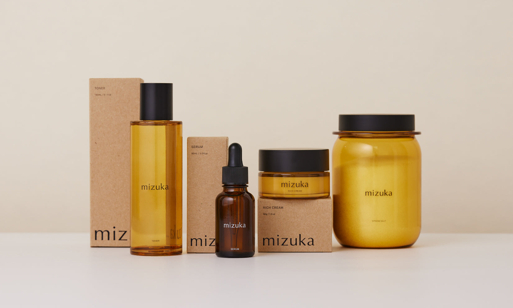 「フィトテラピー×サイエンス」 という発想から生まれたmizukaは、代表の辺見えみりがこれまで数々のスキンケアを体感し続けてきた中で、自身が大切に身体に取り入れていきたいと思える、鹿児島の天然ハーブから抽出した精油と京都の由緒ある天然の地下水、そしてプロテオグリカンや幹細胞エキス、フラーレン、スフィンゴ糖脂質、セレブロシドなどのサイエンスの力を融合。自分の肌を誰よりも愛し続けるために。世代を超えて、生涯を共にすることができる。そんなスキンケアシリーズを作りました。